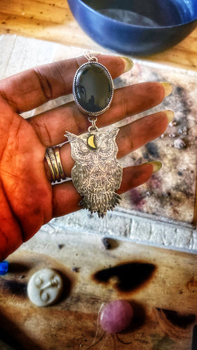 Sterling Silver Onyx and Owl Pendant